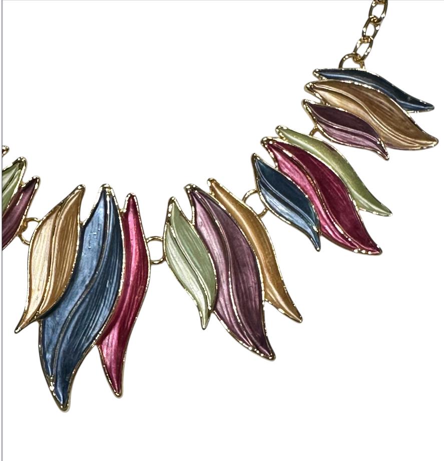 Dai energia ai tuoi outfit con la collana “Color Waves”, un’esplosione di colori vibranti e forme fluide. Realizzata con elementi ondulati smaltati in tonalità blu, fucsia, verde oliva e oro chiaro, questa collana unisce eleganza e creatività in un design dinamico e leggero. Perfetta per chi ama distinguersi con accessori originali e ricchi di personalità, senza rinunciare alla raffinatezza.