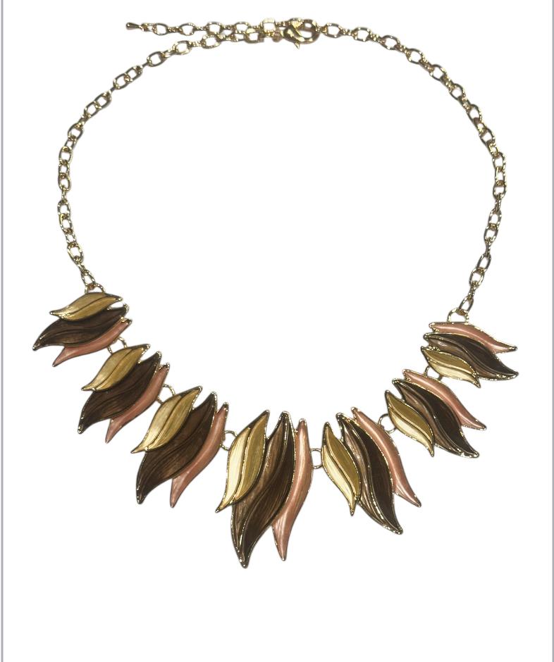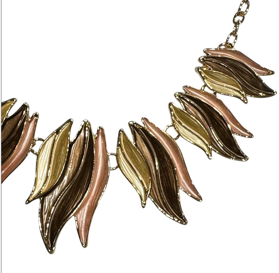 Lasciati avvolgere dall’eleganza fluida della collana “Golden Flow”. Composta da elementi ondulati in tonalità oro, bronzo e rosa cipria, questa collana crea un gioco di colori e movimento ispirato alla natura. Perfetta per aggiungere un tocco sofisticato e dinamico sia a look da giorno che da sera. La sua struttura leggera con chiusura regolabile garantisce comfort e vestibilità perfetta. Un accessorio che parla di stile e femminilità.